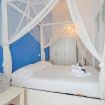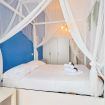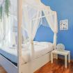 Dal corridoio si accede alla zona notte, dove il cuore della casa rivela il suo lato più romantico: una splendida camera matrimoniale con letto a baldacchino, impreziosito da bianchi tendaggi leggeri che danzano al ritmo della luce naturale, creando un’oasi di pace e poesia. Un luogo incantato dove svegliarsi con dolcezza o lasciarsi cullare da sogni sereni.