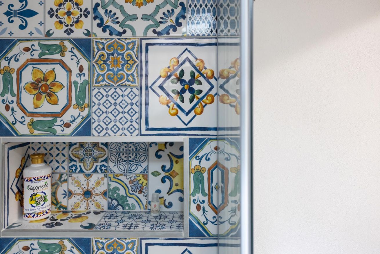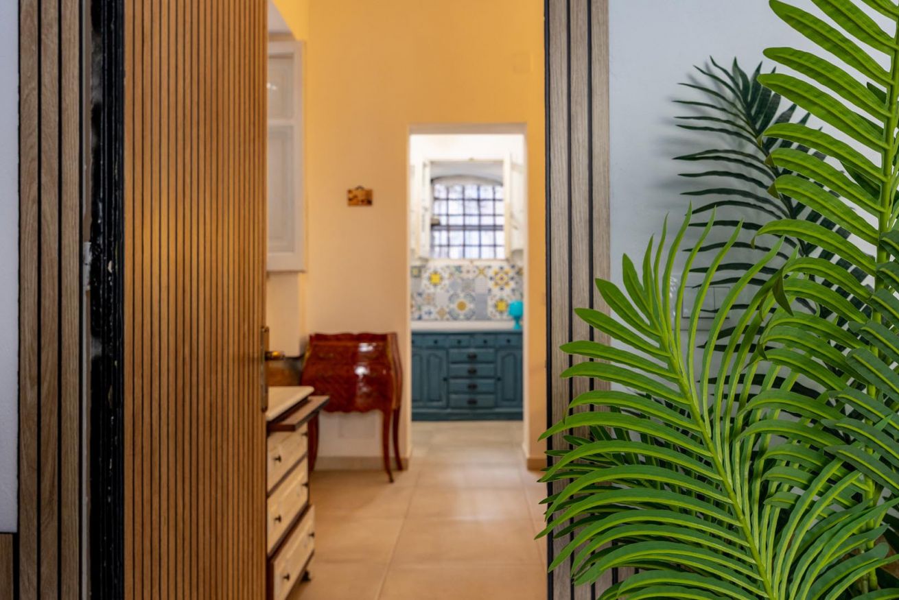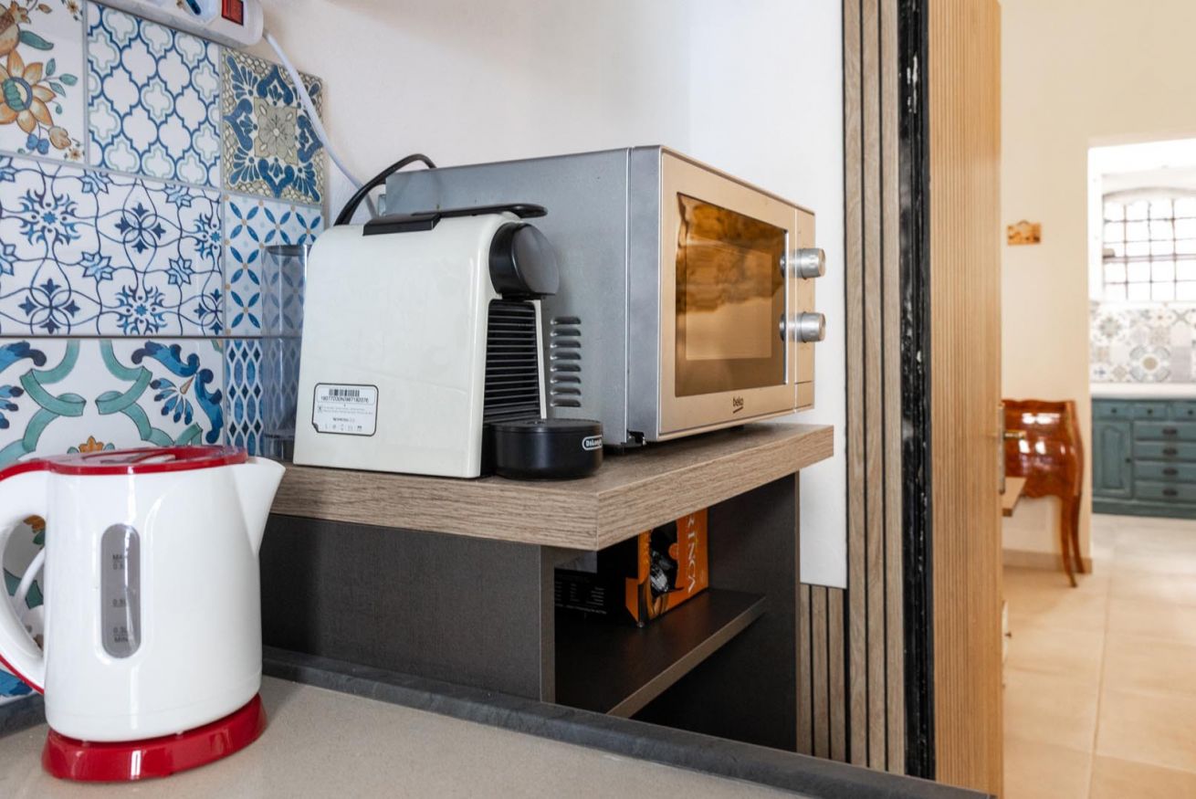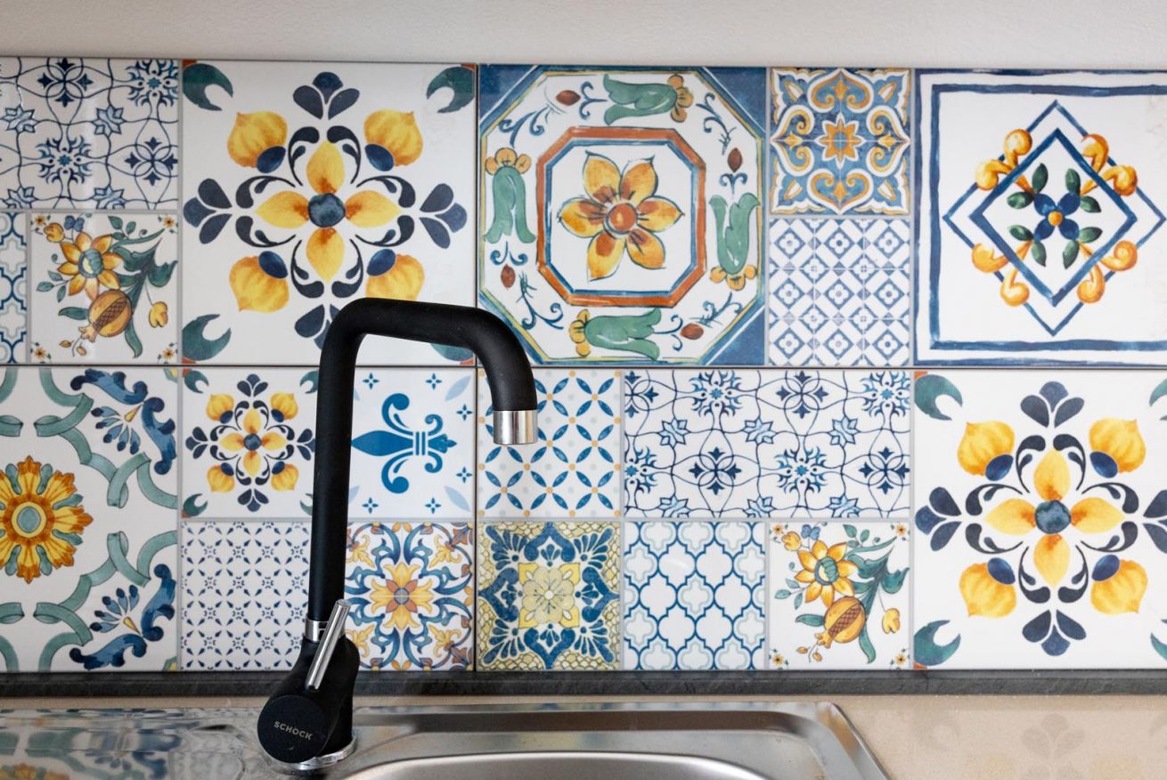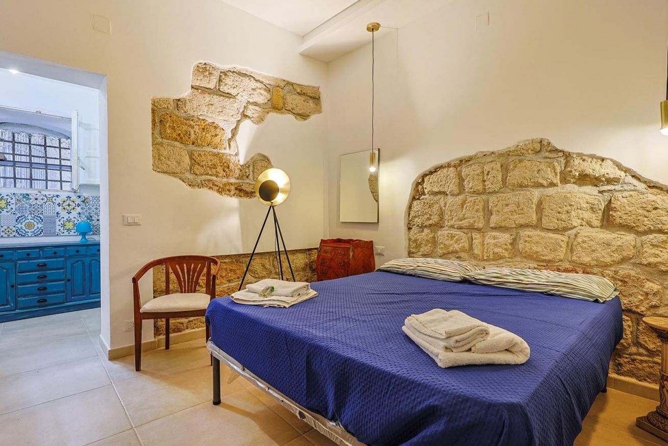 Varcando la soglia, la casa si apre su un ampio e luminoso soggiorno, pensato come uno spazio accogliente e versatile, con un comodo divano letto matrimoniale e una raffinata zona pranzo, perfetta per momenti di relax o cene romantiche. Nello stesso ambiente trova spazio una cucina intima e deliziosa, impreziosita da maioliche dai colori vivaci, che richiamano l’arte e la tradizione palermitana, creando un’atmosfera gioiosa e autentica.