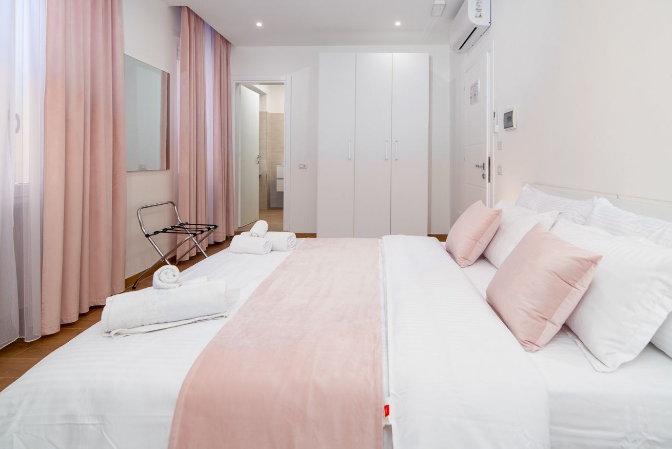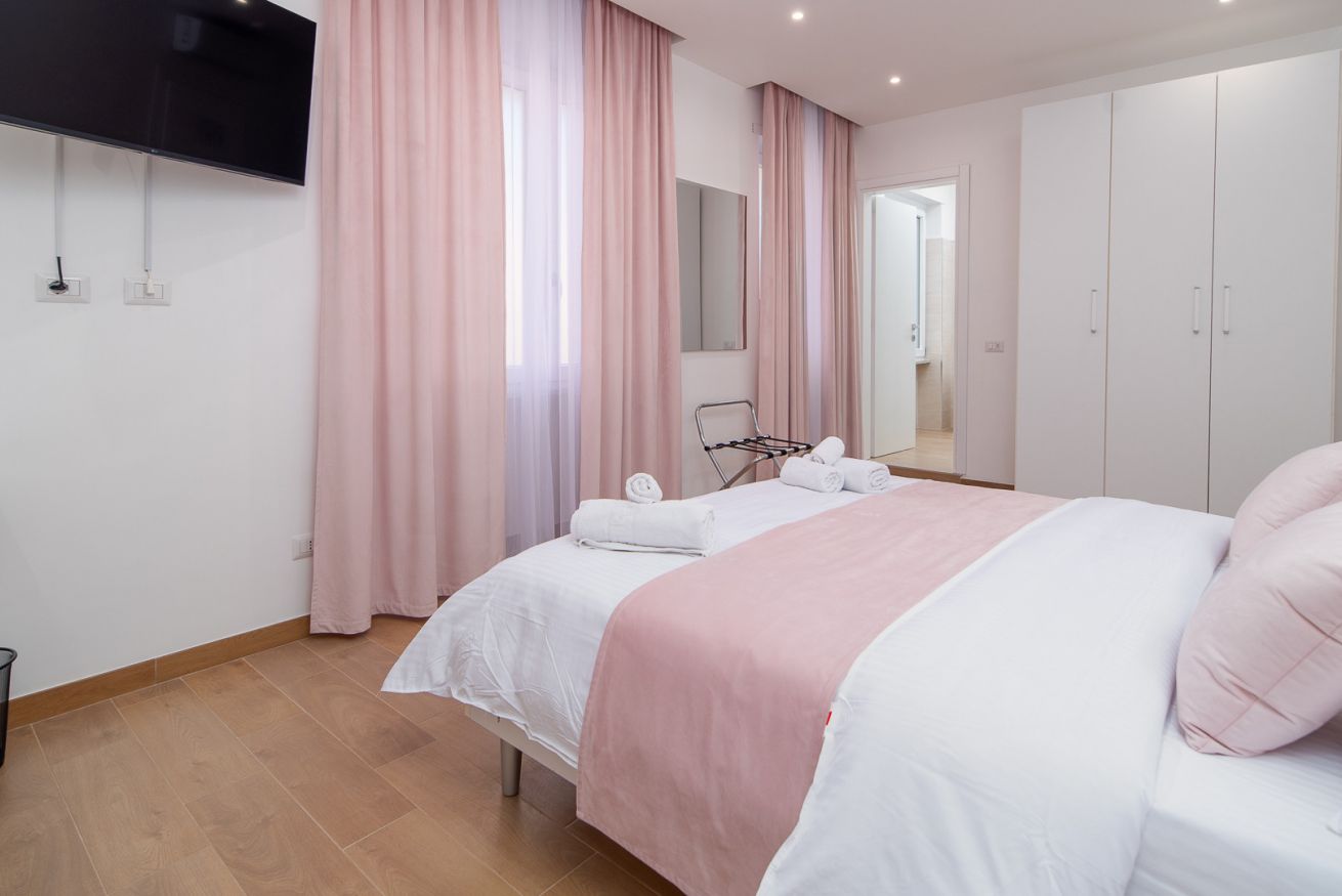Situata nel cuore di Civitavecchia, precisamente in Via Antonio Da Sangallo, la Room 1 di Lovely Rooms è una camera elegante e confortevole, perfetta per chi cerca un soggiorno rilassante in una zona tranquilla e ben collegata. La camera è arredata con cura nei minimi dettagli e offre un'armonia di colori delicati, con tocchi di rosa che creano un ambiente accogliente e rilassante.