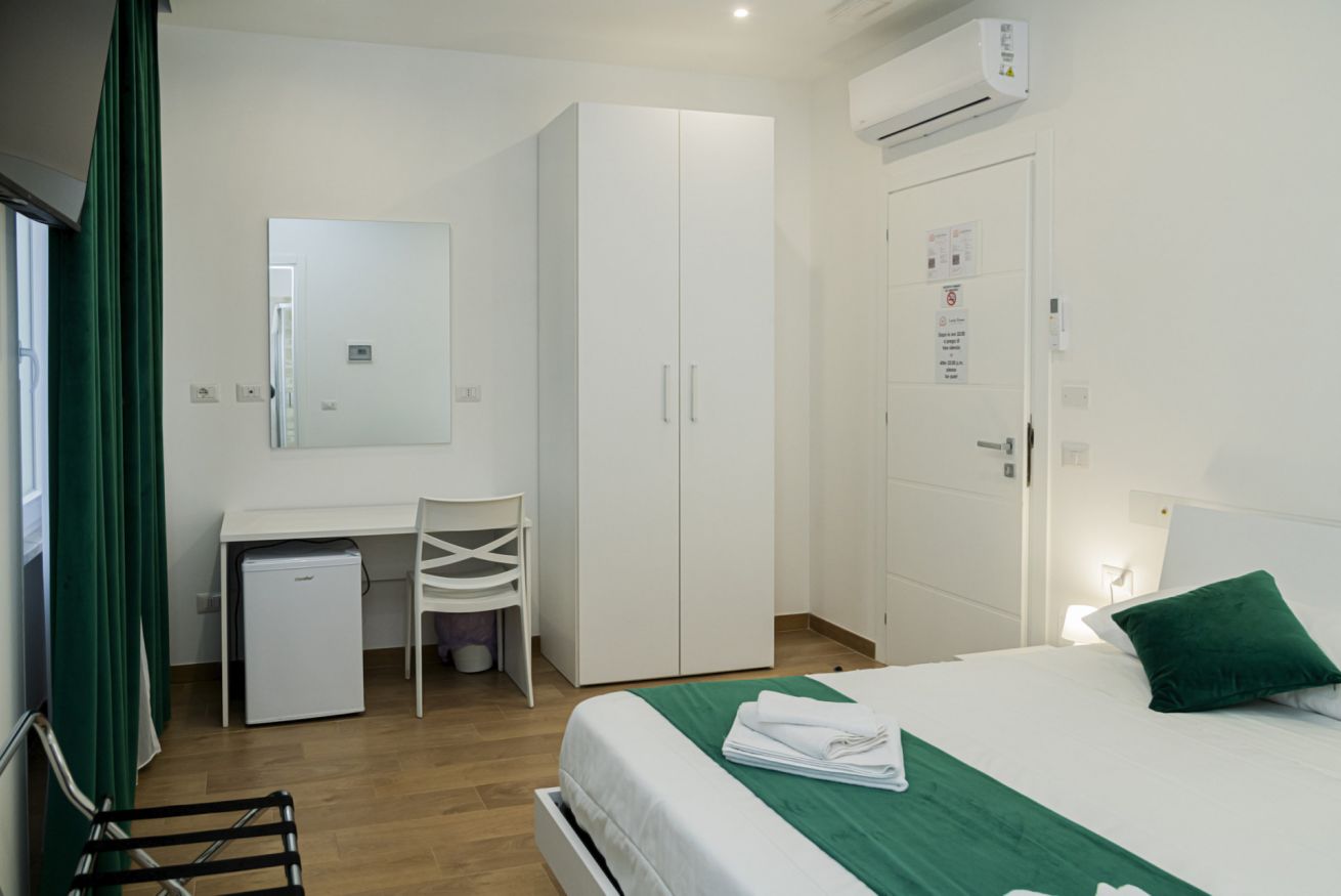 La Room 3 è dotata di un comodo letto matrimoniale, ideale per garantire un sonno rigenerante. L'arredamento moderno ed elegante è stato pensato per offrire il massimo comfort, con una particolare attenzione alla qualità dei materiali e al design raffinato. La camera è equipaggiata con aria condizionata, TV a schermo piatto e connessione Wi-Fi gratuita, per garantire agli ospiti il massimo del relax e dell’intrattenimento durante il soggiorno.
