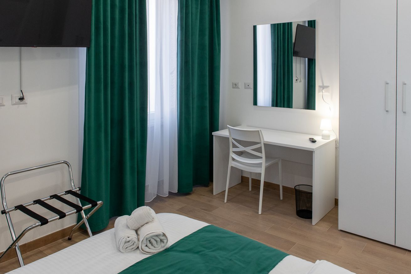 Situata nel cuore di Civitavecchia, in Via Antonio Da Sangallo, la Room 3 di Lovely Rooms è una camera elegante e confortevole, progettata per offrire il massimo del relax e della tranquillità ai suoi ospiti. Gli accenti di verde nell'arredamento creano un’atmosfera fresca e rigenerante, mentre la cura dei dettagli nell'arredo rende la camera un angolo ideale per il riposo e il comfort.