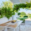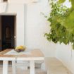 Fuori, la natura abbraccia ogni cosa con grazia antica. Una veranda coperta vi invita a sedervi in silenzio, a contemplare il vento tra gli ulivi, il sole che gioca con le ombre. Un piazzale assolato vi accompagna verso un piccolo frutteto di limoni, dove l’aria profuma d’estate e le giornate si distendono tra chiacchiere lente e momenti condivisi. Ogni angolo esterno è un tributo alla bellezza mediterranea, un frammento di pace che si offre senza chiedere nulla in cambio.