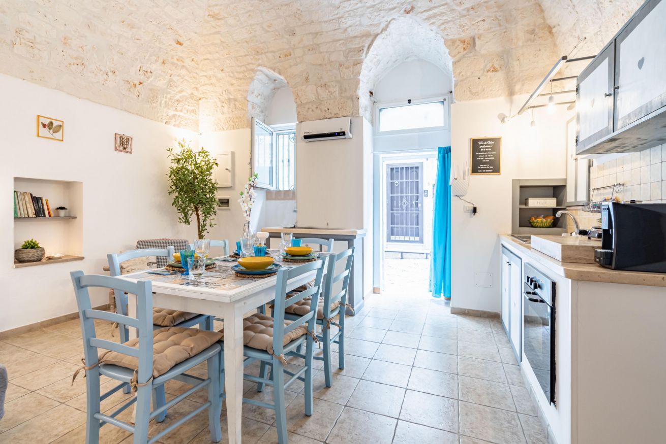 L'arredamento di Vico di Ostuni 8 è un vero spettacolo per gli occhi, caratterizzato da uno stile moderno, colorato e curato nei minimi dettagli. Gli interni sono arricchiti da magnifici archi in pietra locale, che conferiscono un tocco di autenticità e tradizione alla casa, creando un'atmosfera accogliente e suggestiva.